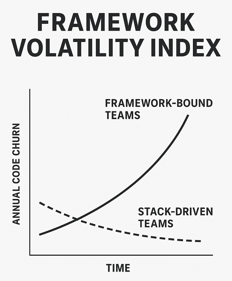 And here’s why it matters: volatility makes churn inevitable. If your system is wired directly to a framework, every refactor, pricing change, or feature pivot forces costly rewrites. If you’re stack-driven, you absorb the volatility with minimal disruption.