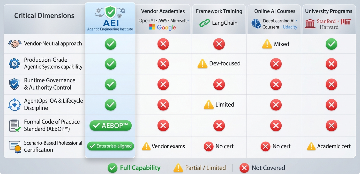 “We were close to missing a critical delivery milestone. AEI’s training gave me the system-level patterns and validation approaches to stabilize our agentic pipeline. We met the deadline and avoided a rollback that would have put my role at risk.”